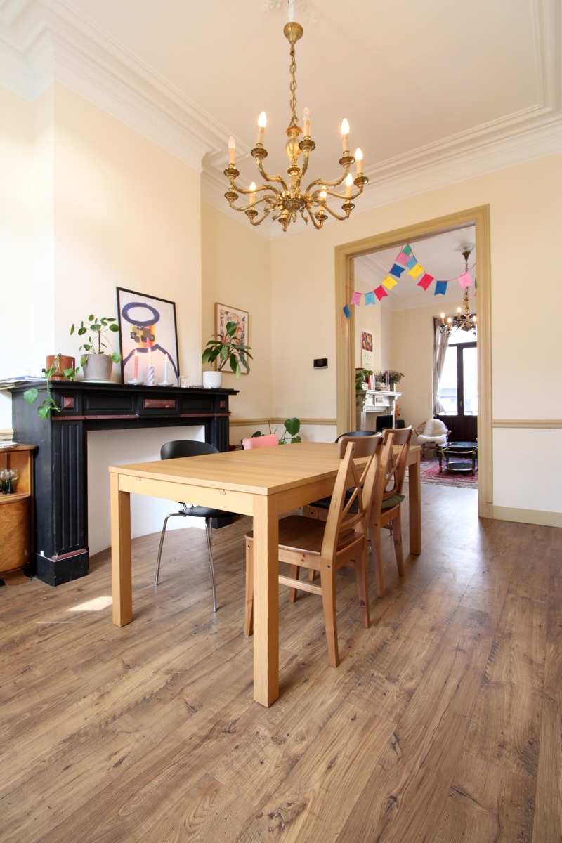 SAINT-GILLES, ideally located just steps from Barrière Saint Gilles, close to all amenities and public transport, RAVEL ESTATE real estate agency presents this beautiful 5-bedroom, 3-bathroom house of 259m² (according to PEB), situated on a quiet one-way street.